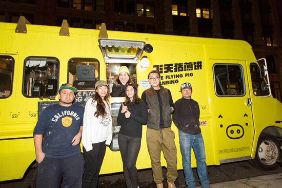 10月,她们的亮黄色食品车“飞猪煎饼”走上了曼哈顿的街头,为纽约大学商学院附近的学生服务,吸引了中城一些中午就餐的人群。而每周一和周二下午,她们在哥伦比亚大学外的百老汇大街上摆摊。李女士说,这辆食品车适合于做煎饼,之前就曾做过法国薄饼。