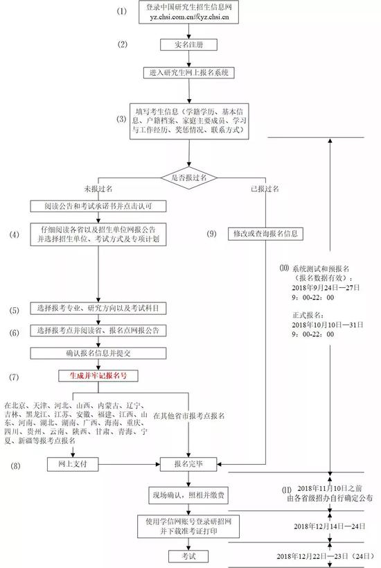 (11)现场确认时间在2018年11月10日之前,具体安排请查看各省级招办发布的网报公告http://yz.chsi.com.cn/sswbgg/。