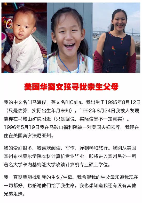 美国学霸女孩马鞍山寻亲生父母 23年前被遗弃