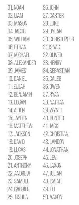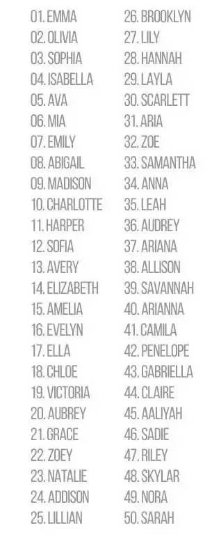 如果你还是不会起英文名,辣么,最最保险的方法是,在这前50个 popular 的名字里选择一个。