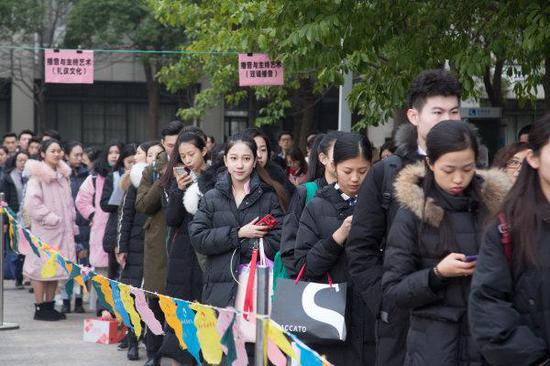 经过文化课初试筛选以后,记者发现,今天前来参加复试的很多学生都默契地走起“知性”路线。素颜是必须,穿着也是十分低调。那些企图浑水摸鱼带妆上场的考生,走到考场门口,还是被师兄师姐们毫不留情地拿卸妆水擦掉了。