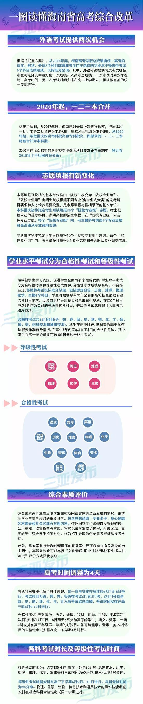 海南省教育厅26日下发通知,海南省教育厅对2016年3月20日印发的《海南省普通高中学业水平考试实施办法》进行了修订完善,并已经省教育厅厅务会议审议通过,从2017级高一年级学生开始实施。那么《海南省普通高中学业水平考试实施办法(修订)》实施后,海南高考会有哪些变化呢?