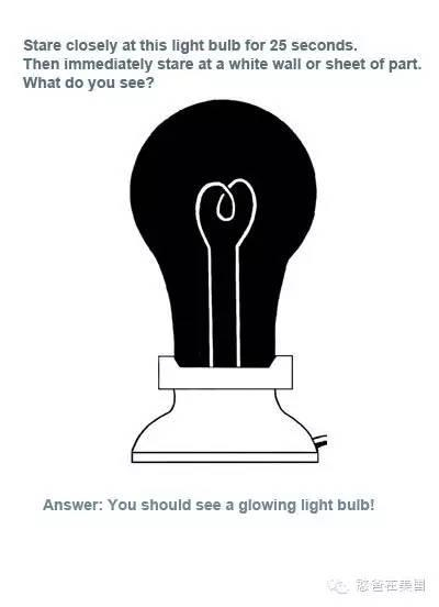 [问题]盯住图中的灯泡25秒,然后立刻目光转移到白墙或者白纸上,你看到了什么?