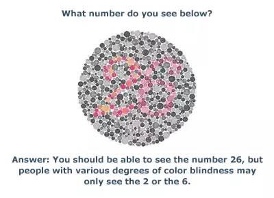这个游戏已经被运用到色盲测试中,美国主流眼科医院很多都运用这套方法来测试色盲。从图中,你应该能看到26。