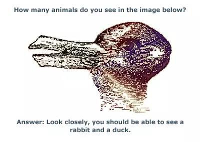 答案是有两只,一只鸭子,另一只是兔子。