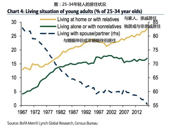 通常来说,结婚、生子等人生事件能促进人们购房的计划,但是如今的成年人有更开放的两性概念、独身拼事业、长期与父母居住。这都是美国人购房计划延迟的另一原因所在。