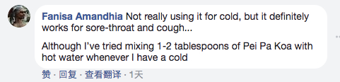 “这个枇杷膏真好用,里面的蜂蜜会让喉咙舒服很多,而且也十分美味,味道很经典。”