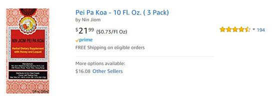 刚刚过去的这个冬天,美国饱受流感之苦,甚至成为一些人的致命疾病。这时有人发现来自中国的一剂良药——川贝枇杷膏,这款具有神奇功效的糖浆有效缓解了感冒带来的咳嗽症状,不少人口口相传其神奇疗效,亚马逊上这款药的最高标价达到85.58美元!