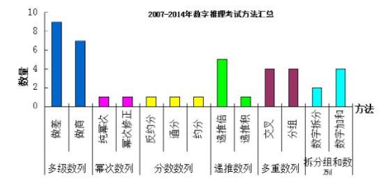 从图表可以发现,07年-14年期间常考的知识点为多级数列的做差、做商思想;递推数列常考知识点为递推倍思想;多重数列的交叉、分组思想;以及拆分组和数列的数字加和和数字拆裂思想。可以看出,上述的这几种思想几乎都是每年必考的知识点,也就是要求考生必须掌握的思想和技巧。