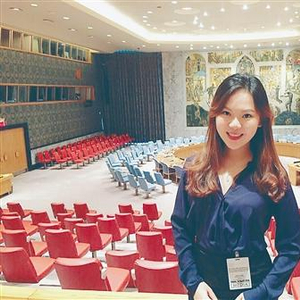 经过重重考核,上个月她如愿以偿进入联合国纽约总部开始实习,她也是通过全球招聘进入联合国总部屈指可数的本科生。