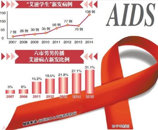 截至2014年年底,广州市累计报告青少年学生感染艾滋病病例达231例,至少3例报告时在读高中。男男同性传播途径在学生病例中尤为突出,占比接近3/4。