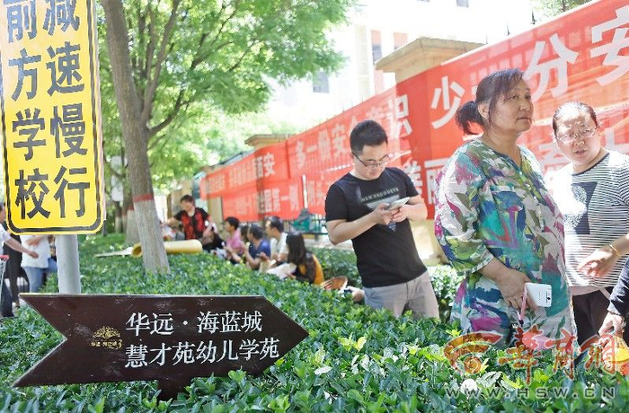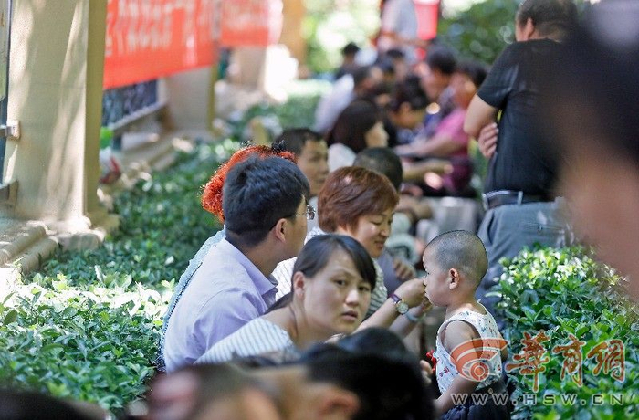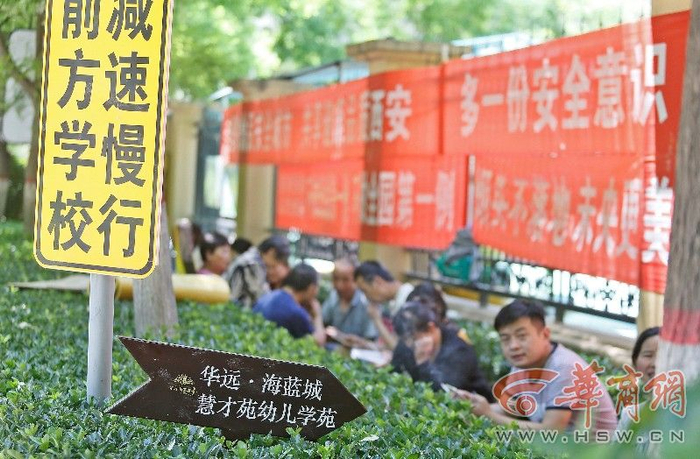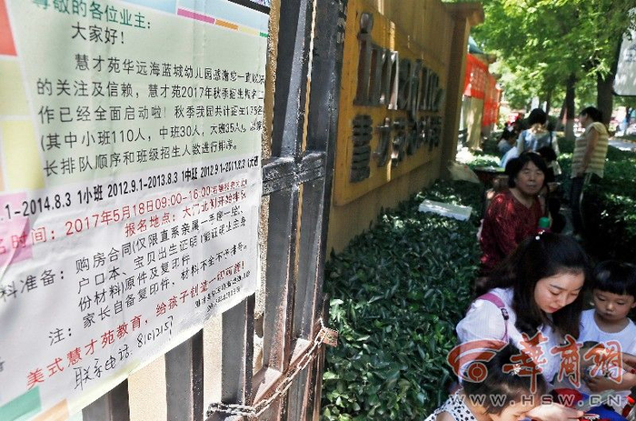 今天的西安骄阳似火,在西安一小区幼儿园门口却排着100多人的队伍,大家一边抱怨天热但谁也不敢离开,因为明天上午9时是幼儿园报名的日子,名额有限,大家都担心自家孩子没学上。