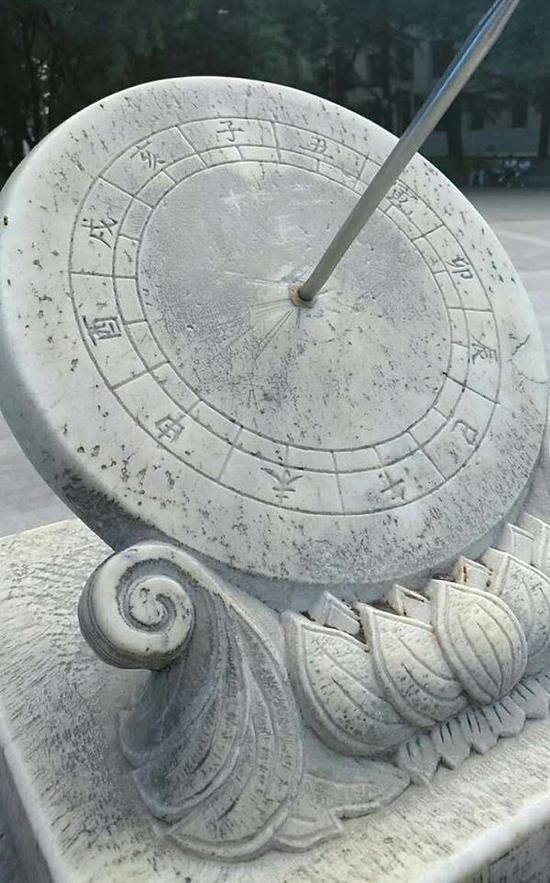 8月17日,澎湃新闻(www.thepaper.cn)从多位清华大学在校生处获悉,位于该校大礼堂前草坪南端、清华学堂与第二教学楼之间的日晷有被人刻画的痕迹。