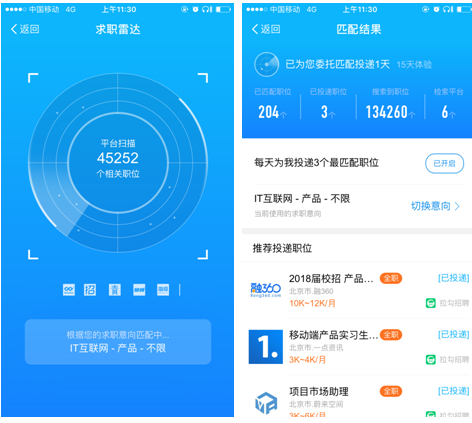 同时,趣校园通过“岗位搜索雷达”每天把用人单位和大学生的岗位需求更精准地匹配。不仅能显示出匹配后的职位数量,并且筛选出最精准的3个职位,经用户授权后,自动投递到背后的企业。在平台展示上,更是“千人千面”,大一到大四显示的页面完全不同。