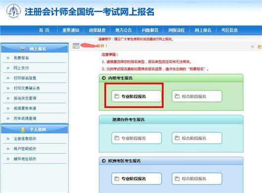 1、登陆中注协官网,进入“注册会计师全国统一考试网上报名”系统。