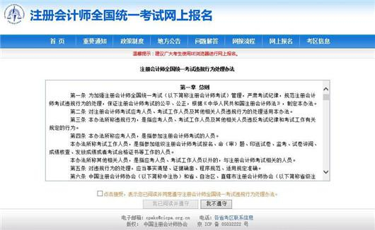 4、然后进入“注册会计师全国统一考试违规行为处理办法”,你可以浏览相应的条款,勾选,确认。