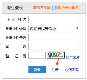 2、在报名前,新老考生均需要先注册,后登录报名。在登录框中,点击[注册];