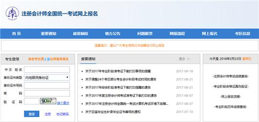 2018年注会报名入口及报名流程介绍