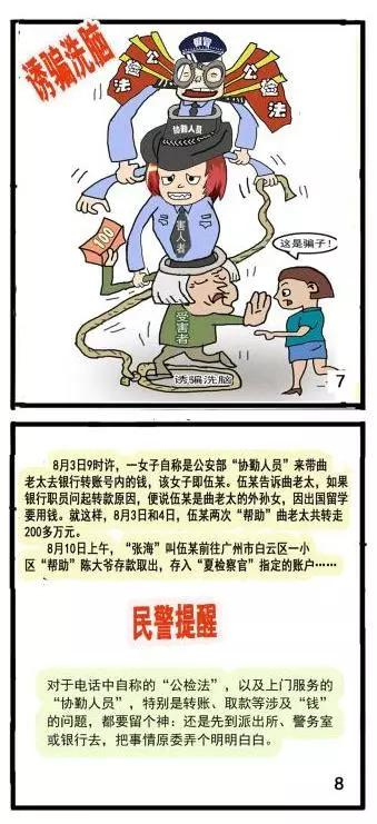 8月3日14时许,居住在越秀区的80岁的曲老太太接到一名自称是电信局工作人员的来电,说曲老太太家里的固定电话涉嫌被人盗用信息参与一起诈骗案件,电信部门要作停机处理。由于平时都要靠家里的固话和儿子等人联系,曲老太太一听就急了,告诉对方不能停。对方说不同意的话可以报警,就在电话里帮曲老太太转到公安局报警。