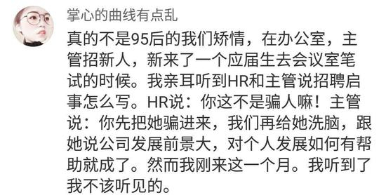 八姐工位后方新来的95后的同事入职2个星期就辞职了,听说走之前和领导互相对骂,还差点打了起来……“在职场千万不要大声责骂年轻人,他们会立刻辞职的”,事后人力资源的同事心有余悸的总结。
