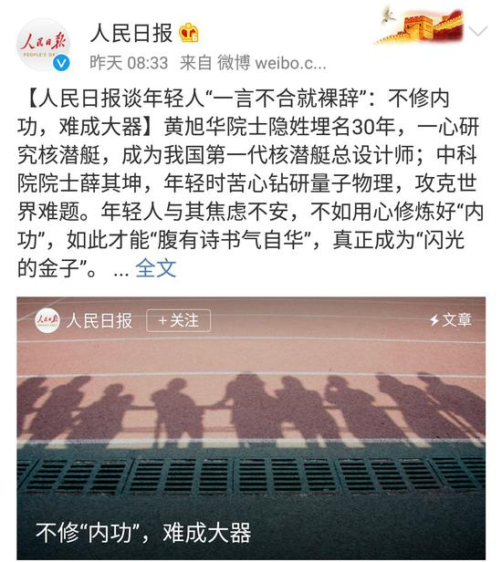 人民日报谈及原因称,年轻人好高骛远,缺乏定力,频繁跳槽,事业却很少有起色。