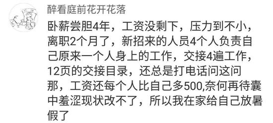 八姐甚至还见过我司一位新入职的年轻人,校招里打败千军万马走上岗位,上午办理入职后下午就去人事离职了,辞职理由是“工作环境不是我想要的,食堂味道不好”……