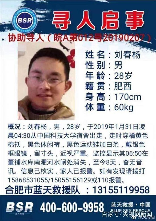 1月31日凌晨,中国科学技术大学地球化学专业的在读博士生刘春杨从学校宿舍离开后失踪。据家属透露,刘春杨最后一次与家里电话是在1月30日,当时家人觉得他情绪正常,与往常无异。1月31日凌晨4时30分,刘春杨从中科大宿舍离开。在6时50分,他在董铺水库南淝河水闸处消失。失联15天后,其遗体在董铺芦苇荡中被发现,目前死亡原因正在调查中。