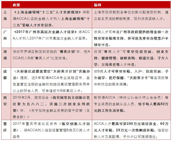 一直以来,全国各地的人才引进计划和人才培养计划中都把金融人才,尤其是高端金融人才(包括ACCA、CFA等)当作重点引进培养的对象,各项利好政策也紧随其后。