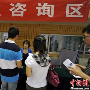资料图:图为求职者正在填写用人单位提供的信息表格。赵晓 摄