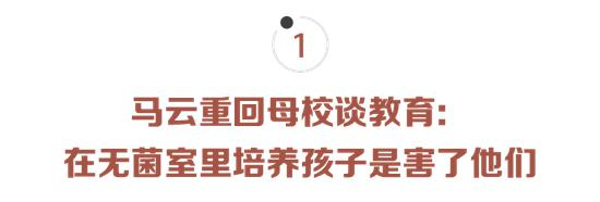 马云谈到:“没有不合格的学生,只有不合格的老师,没有不合格的孩子,只有不合格的家长。过去我们担心孩子变成了温室里面的花朵,但是现在越来越多家长的倾向,是把孩子放在无菌室里面进行培养,这样是害了孩子。“