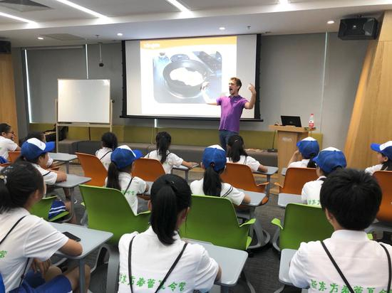 8月6日开始,孩子们将展开为期一周的暑期游学。他们将在天安门广场观看升旗仪式,游览鸟巢、水立方,登上长城,走进故宫、颐和园、国子监,在国家博物馆观看展览,在文新书院聆听国学讲座,在国家大剧院欣赏戏剧演出。今天上午,来自新东方青少外教直播blingabc的美国老师Lukas O’Hara还为孩子们上了一节生动的口语课。