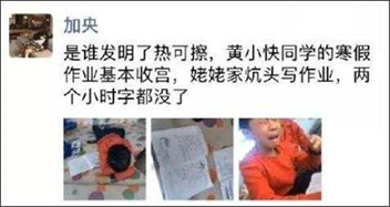 长大之后才发现,现在有一种笔叫热可擦。时代真的不同了,以前都是涂改液修正带,现在这种用特殊材料制成的热可擦笔,写出来的字迹可以因为橡皮的摩擦发热而消失。然而,有娃被坑了。今年寒假快结束的时候,一娃用热可擦笔写的作业,被姥姥家的炕头给热没了。