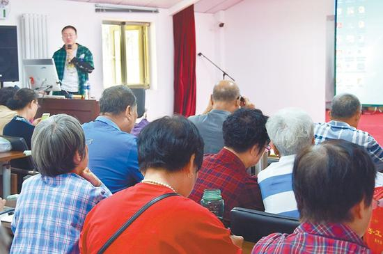 单新明慢慢说着,讲台下的老人戴着老花镜,一边按部就班地操练,一边认真地记笔记。