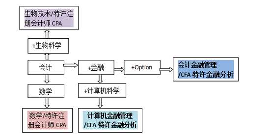 以滑铁卢大学4年会计加一年研究生的发展方向图为例。 5年中,一个本科学位,一个硕士学位,一个职业资格考试,如果有对应的Co-op工作经验很快获得对应的职业资格证书。