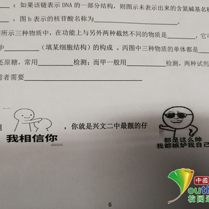 记者了解到,该试卷是兴文二中高一15班的月假作业,试题配有表情包和一些有趣的文字,如“做对这套题,我相信你就是兴文二中最靓的仔”是试卷最后的配字,其中“我相信你”采用了表情包的形式展示。试卷中还有多处带有表情包的有趣语句,比如“是不是觉得生物难?不,我不要你觉得,我要我觉得:so easy!!!!”还加了一段配字为“来打我呀”的表情包,让人看了忍俊不禁。