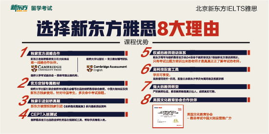 北京新东方英联邦项目部是新东方教育集团旗下的知名教育品牌,致力于为出国留学、移民、就业的学生提供雅思培训服务,经过10余年的发展,英联邦项目部凭借其强大的师资力量,深厚的教育底蕴,致力于为各位雅思学员服务。