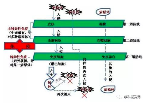 人的免疫系统有三道防线组成。这三道防线都是在人类长期进化过程中形成的。但在人类进化的过程中,SARS病毒、2019新型肺炎病毒这类病毒是一直处于“缺席”的状态,所以人体对其免疫能力相对低下。由此可以看出,人虽然有强大的特异性免疫,能产生上百万种抗体,但这种适应的能力也是有一定的限度的,也仅仅是适应其所生存的环境;而一旦遇到之前所未遇到的环境因素,生物即会在一定程度上表现出不适应性。