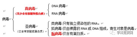 (3)按化学组成分类:真病毒(至少含有核酸和蛋白质)、亚病毒(仅含有核酸或蛋白质)