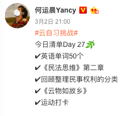目前,“云自习挑战”话题在微博已经有30万的讨论量。