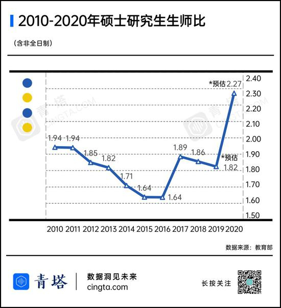 2月28日官方透露,精准测算全国现在有44万左右的研究生导师。按照今年扩招后招生规模100万人计算,2020级硕士研究生生师比将达到2.27:1,同样是历史新高。