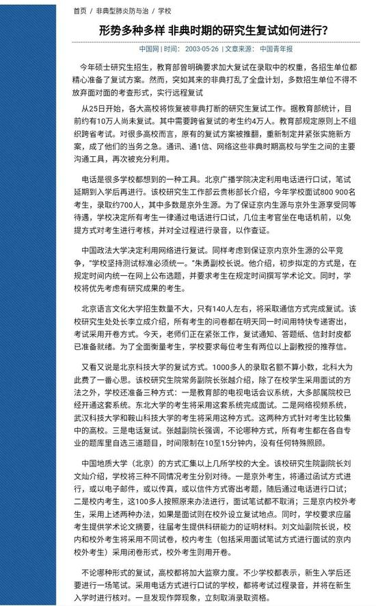 而对于学校来说,唯一具有借鉴意义的就是03年非典时期,高校复试的做法。