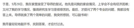 还有人回忆了自己03年考研复试时的经历:电话面试时,遇到答不上来的专业问题:“我尽量轻轻地翻开书,找到答案,才应付过去。”