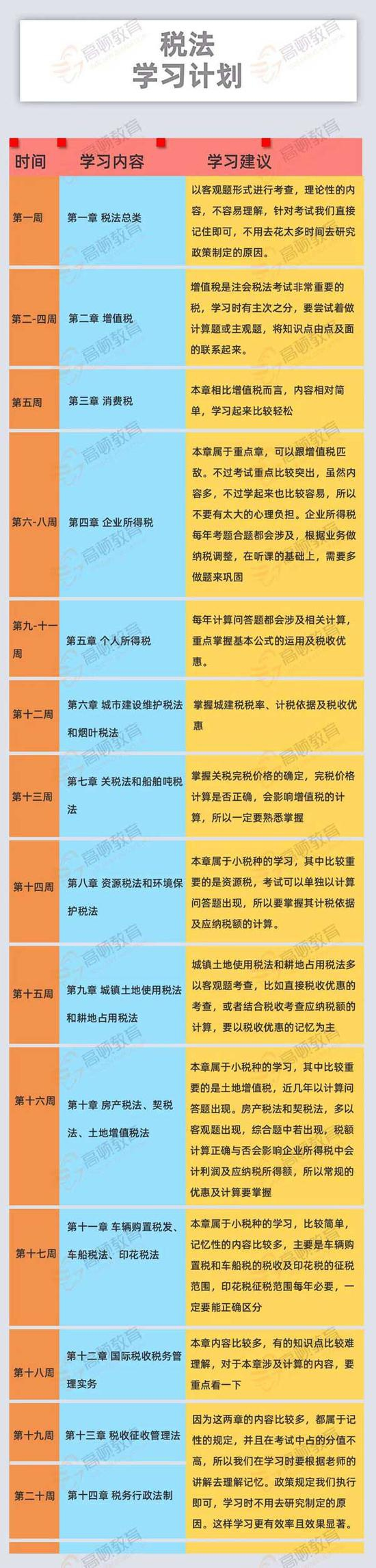 对于小税种的学习,比如房产税、土地使用税、契税、车船税等,主要结合税收优惠和基本税额的计算规定会计算应缴纳的税款。对于大税种的学习,比如企业所得税、增值税、消费税、个人所得税、土地增值税等要熟练掌握,不仅是税收优惠、而且一些复杂的、特殊的规定也要学会灵活掌握,恒重点的部分要稳打稳扎,不可掉以轻心。