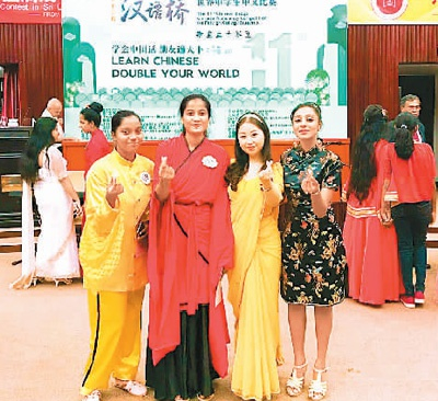 “学好中国话,朋友遍天下”,这是善真学习中文的初衷。与叶诗诗相似的是,善真的“汉语桥”比赛之路也并非一帆风顺,连续参加了3年——成绩从斯里兰卡赛区的第9名到第1名,从穿着熊猫装因成绩不够理想而在后台哭,到唱着《新贵妃醉酒》捧着冠军奖杯笑,3年的艰辛努力又岂是三言两语可以道尽的。