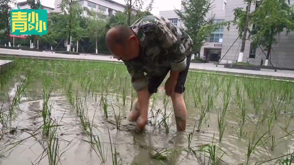 近日,四川成都,四川农业大学图书馆门口的稻田里,工作人员开始插秧了。网友纷纷表示“不愧为农业大学”,该校同学却表示,这是“基本操作”。据悉,这些水稻丰收后将用来做研究使用。