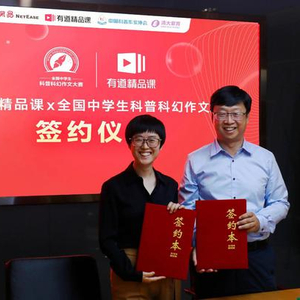 “科幻文学可以让学生看到星际旅行的浩瀚、生命智能的意义……它能带给学生看待世界的全新视角。有道精品课牵手中国科普作家协会开办科幻作文课,是希望通过我们的在线直播系统,让全国学生都能接受顶尖科幻作家的指导,让学生看见更大的世界。”签约仪式上,网易有道高级副总裁、有道精品课负责人罗媛分享道。