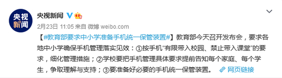 #教育部要求中小学准备手机统一保管装置#