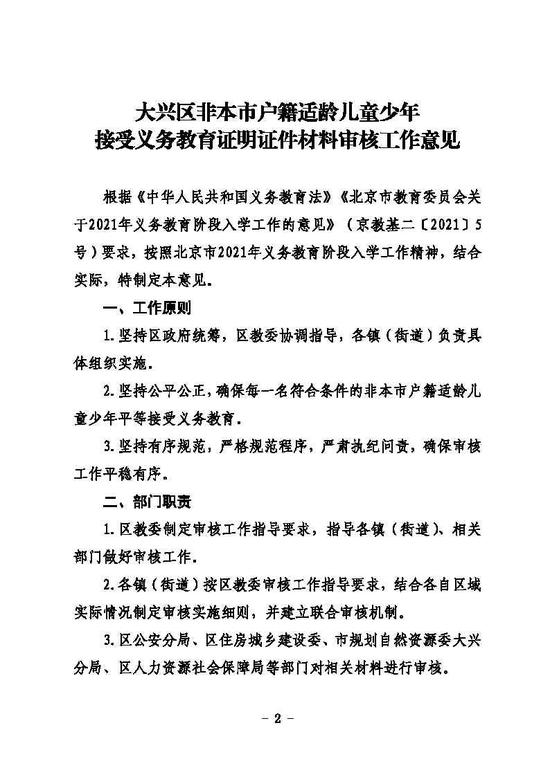 2021年《大兴区非本市户籍适龄儿童少年接受义务教育证明证件材料审核工作意见》