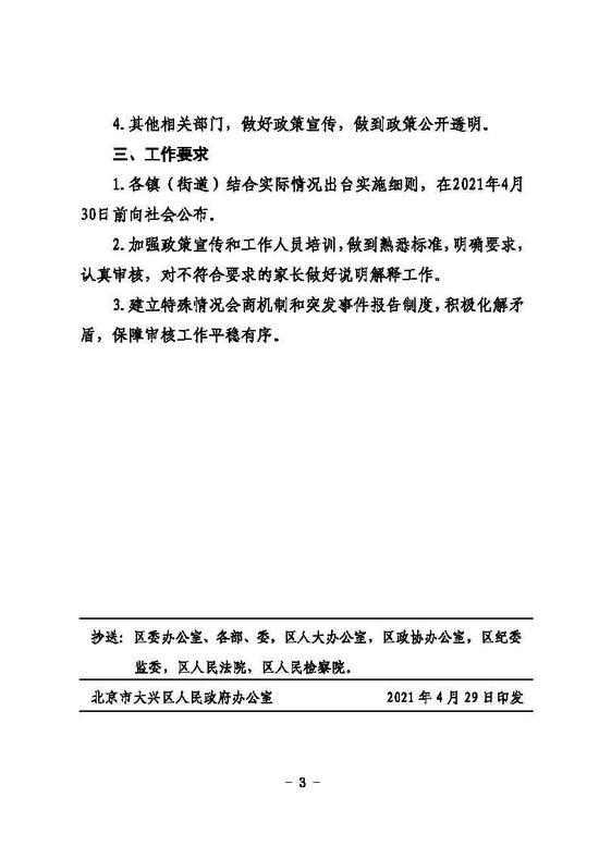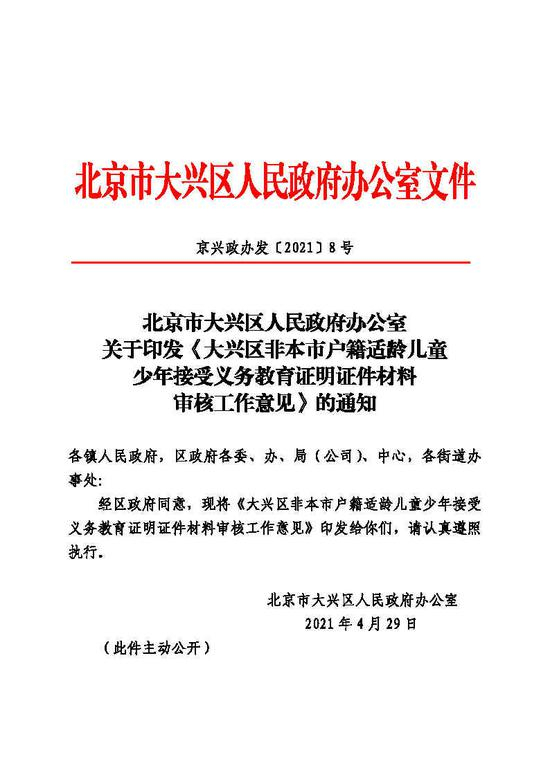 2021年《大兴区非本市户籍适龄儿童少年接受义务教育证明证件材料审核工作意见》发布。