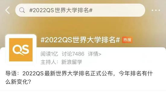 话题#2022QS世界大学排名#迅速登上微博热搜,引发网友热议。